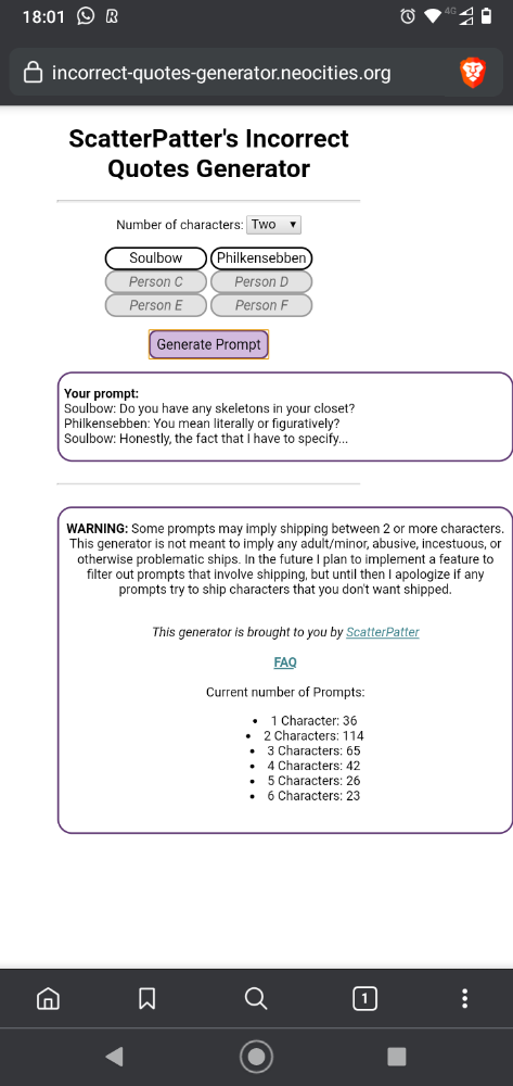 Number of characters this generator is not meant to imply any adult/minor, abusive, incestuous, or otherwise problematic ships.